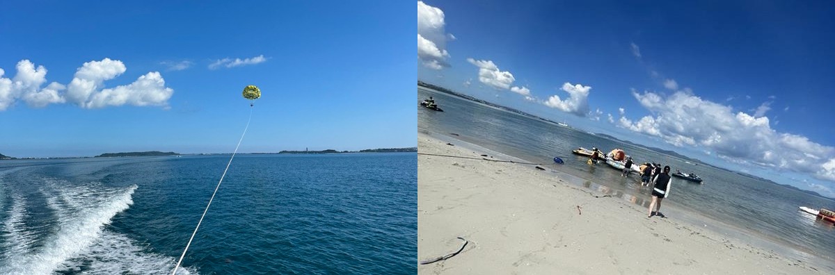 ・アクティビティ参加時。(沖縄ならではということでパラセーリングを体験。)